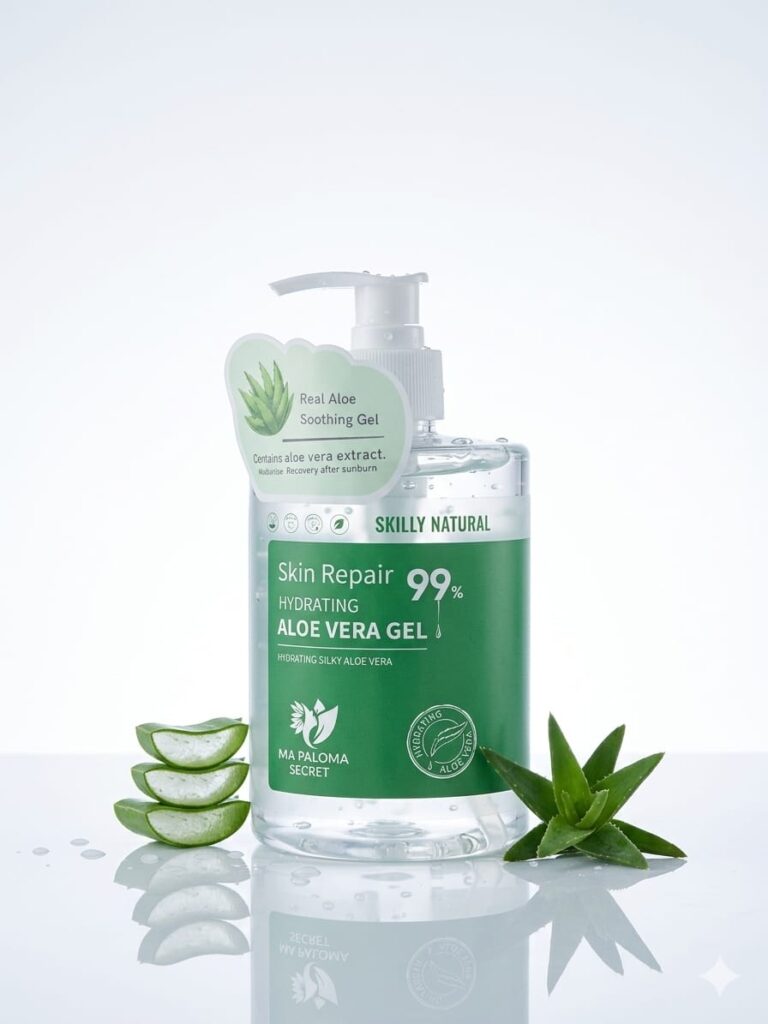 MIA PALOMA Secret 99% Soothing & Moisturizing Aloe Vera Gel Hydrate | Soothe | Refresh Nature’s ultimate multitasker. This watery-clear gel delivers instant hydration and a cooling sensation, making it an essential companion for every season and every skin type. Net: 260mL The Multi-Purpose Glow Formulated with high-purity Aloe Vera and Sodium Hyaluronate, this gel provides comprehensive care for both face and body. * Instant Hydration: A fresh, watery-clear formula that sinks in immediately to quench thirsty skin. * Essential After-Sun Care: Calms and moisturizes skin after sun exposure, relieving redness and heat. * Dryness Relief: Effectively targets flaky or tight skin, restoring a smooth and supple texture. * All-Season Refreshment: Light enough for hot summer days yet hydrating enough for winter protection. Product Specifications * Shelf Life: 24 Months after opening. * Skin Type: Suitable for all skin types. * Manufacturing Standards: Executive standards: QB/T2874. * Storage: Store in a cool place; avoid direct sunlight to preserve active botanicals.
